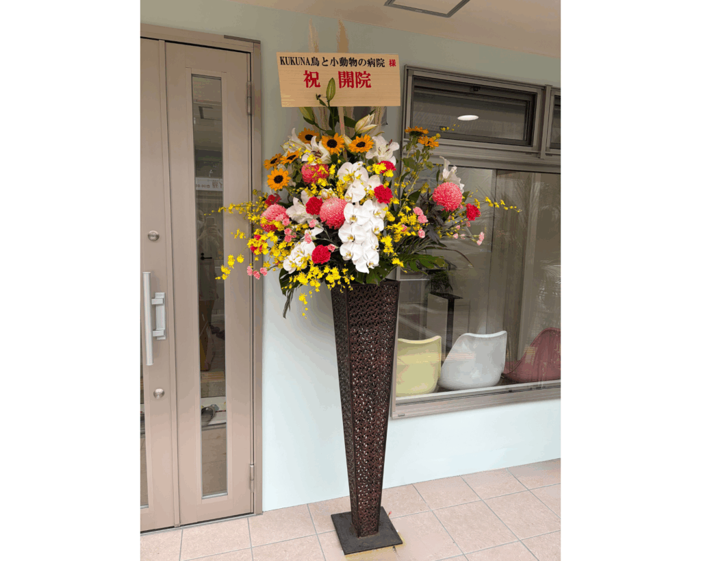 先日、以前の病院でご縁のあった患者様から、開院のお祝いにとても立派で可愛いスタンド花をいただきました。